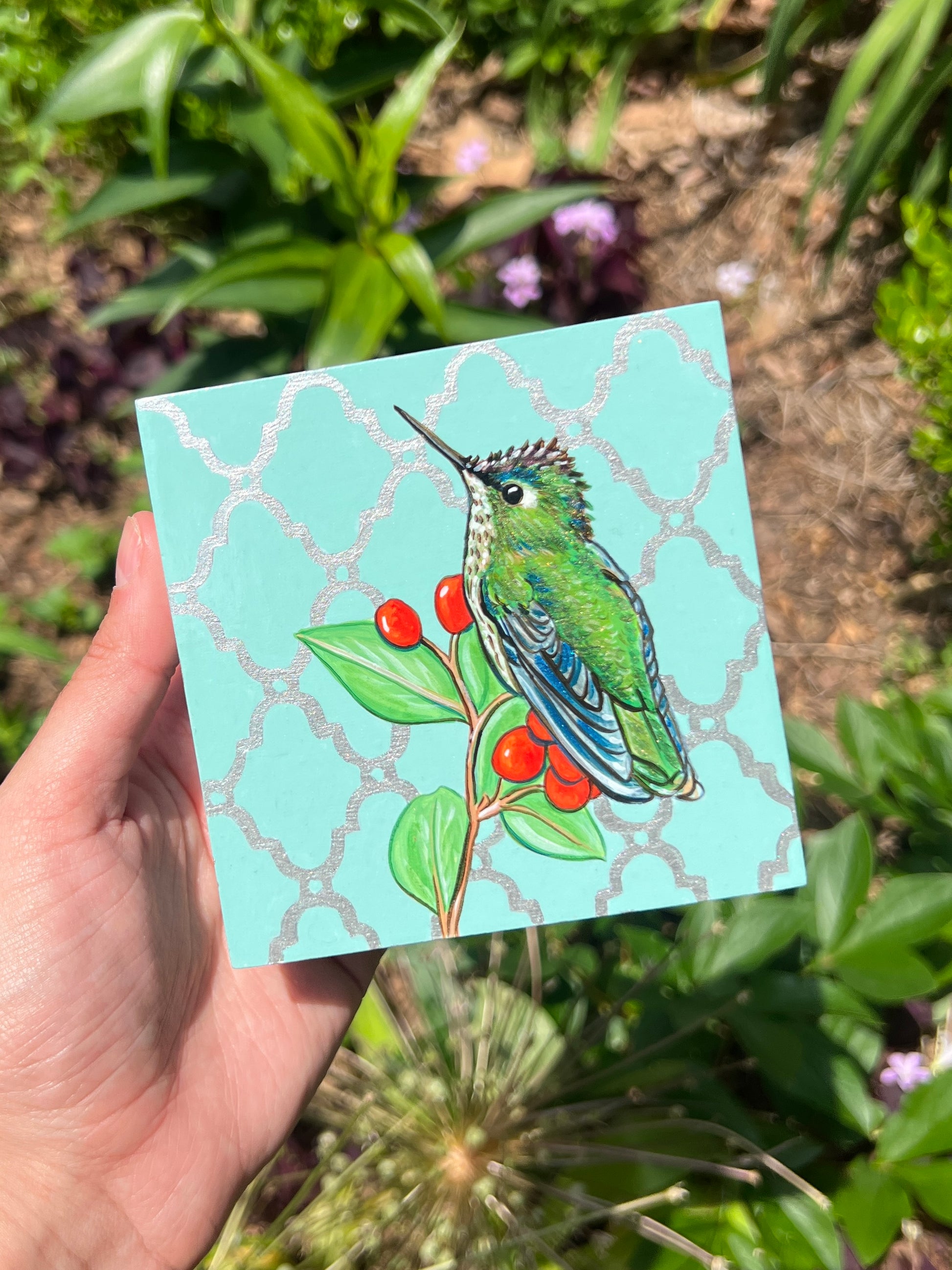4x4x1.5 inch Acrylic Painting on cradled wooden board.