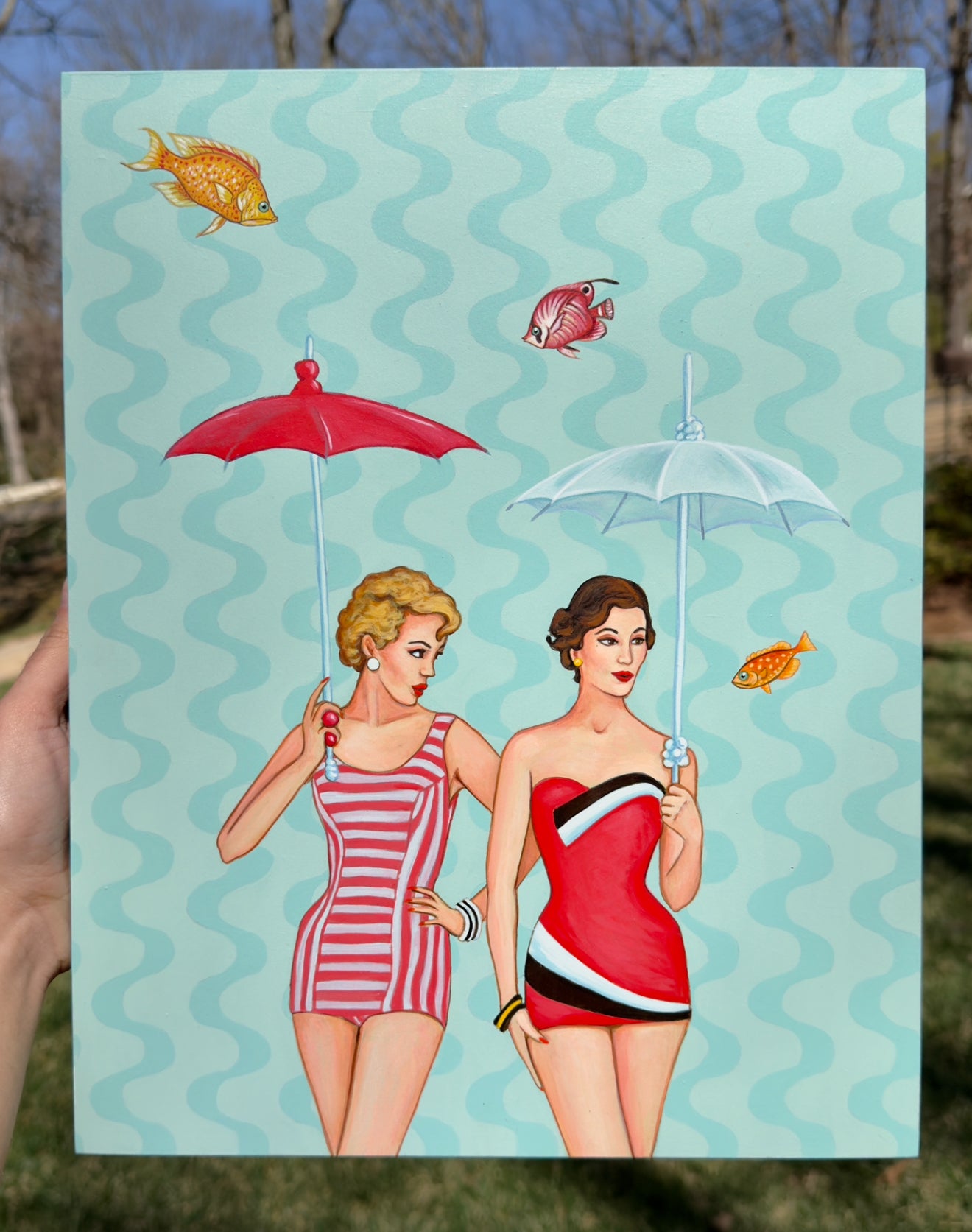 Original painting ready to hang. Acrylic on cradled wooden board, 11x14x1.5 inch
