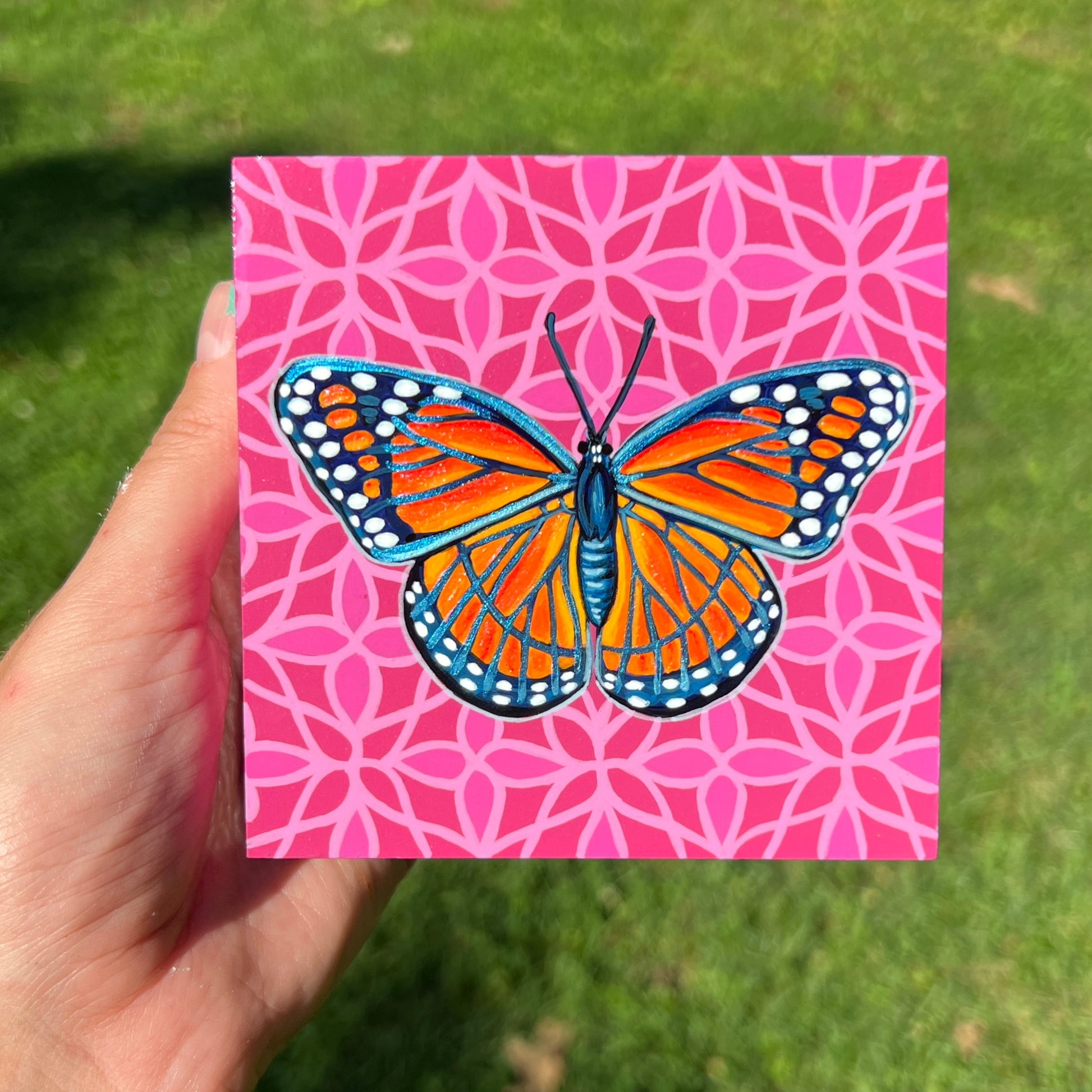 4x4x1.5 inch Painting. Acrylic on cradled wooden board
