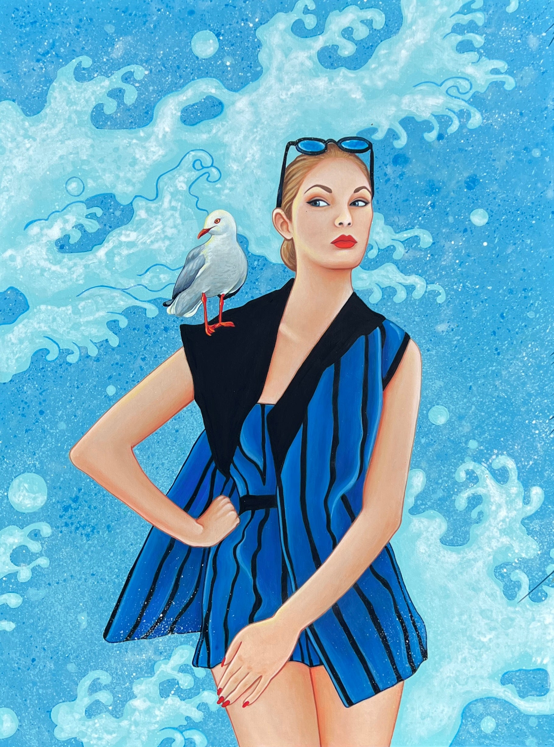 Acrylic on cradled wooden board. 18x24x1.5 inch, ready to hang.